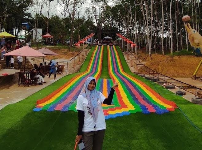 Menghadirkan nuansa alam yang menyejukkan, Taman Emastri Batuah menawarkan beragam wahana menarik, salah satunya adalah Rainbow Slide, wahana seru berukuran 30 meter yang pertama kali ada di wilayah tersebut.