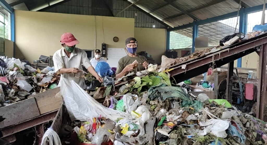 Foto: Proses Warga Desa Suka Maju mengolah sampah menjadi produk bermanfaat.