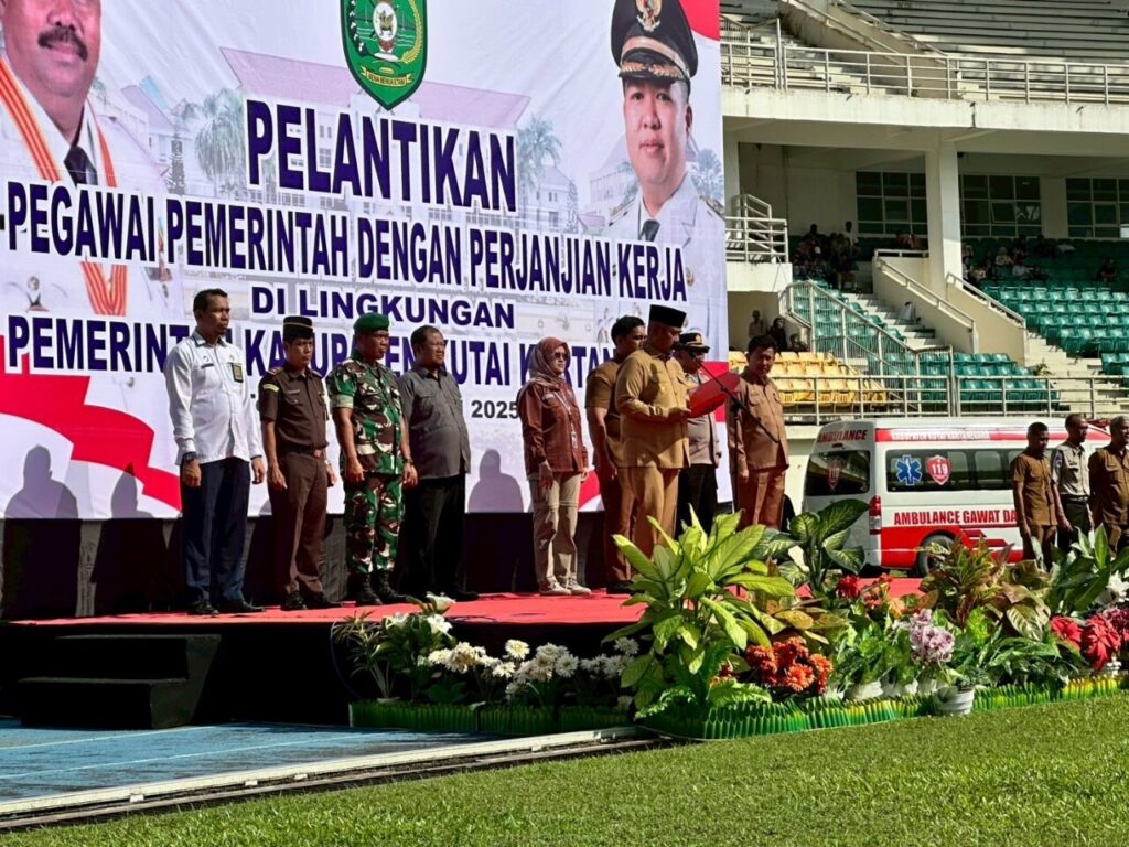 Kabaristimewa.id, Kutai Kartanegara – Di Stadion Aji Imbut pada Senin (26/5/2025), Pemerintah Kabupaten Kutai Kartanegara melantik 3.870 Pegawai Pemerintah dengan Perjanjian Kerja (PPPK). Pelantikan tersebut menjadi bagian dari strategi reformasi birokrasi yang dicanangkan Bupati Edi Damansyah. Ia menyebut, pelantikan ini bukan sekadar pengangkatan status, melainkan bentuk tanggung jawab baru.