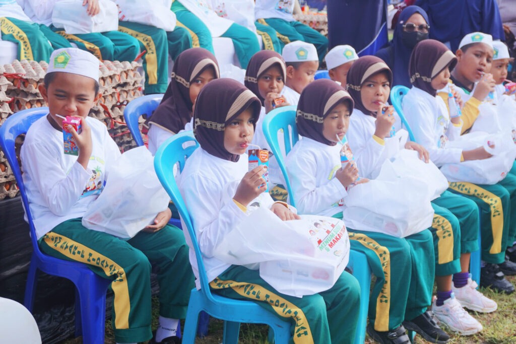Kegiatan ini disambut antusias oleh anak-anak yang menerima langsung bantuan susu dan telur. Menu bergizi tersebut diberikan sebagai bagian dari kampanye konsumsi sehat. Dengan demikian, anak-anak diharapkan terbiasa mengonsumsi makanan bernutrisi.