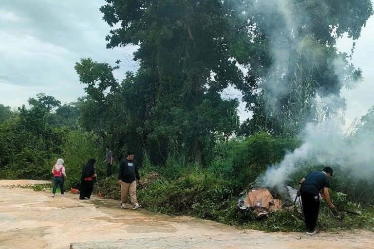 Gotong royong juga dimanfaatkan untuk pembersihan sampah, pemotongan rumput tinggi, serta perapian taman untuk menciptakan lingkungan kerja yang lebih rapi dan nyaman.