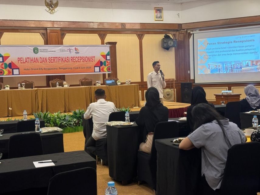 Kabaristimewa.id, Tenggarong – Tiga praktisi hotel dari Yogyakarta berbagi pengalaman dalam pelatihan resepsionis yang digelar Dinas Pariwisata Kukar. Yohanes Hendra Dwi Utomo, Herryadi Baiin, dan Iwan Ridwan Munajat diundang khusus untuk menyampaikan praktik pelayanan terbaik kepada peserta pelatihan.