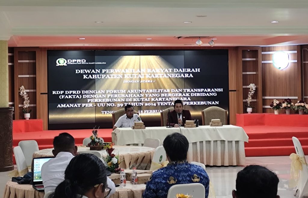 Kabaristimewa.id Tenggarong – DPRD Kabupaten Kutai Kartanegara menggelar Rapat Dengar Pendapat (RDP) bersama Forum Akuntabilitas dan Transparansi (FAKTA) serta sejumlah perusahaan perkebunan, Rabu (18/2/2026). RDP tersebut membahas pelaksanaan kewajiban kemitraan 20 persen sebagaimana diamanatkan dalam Undang-Undang Nomor 39 Tahun 2014 tentang Perkebunan.