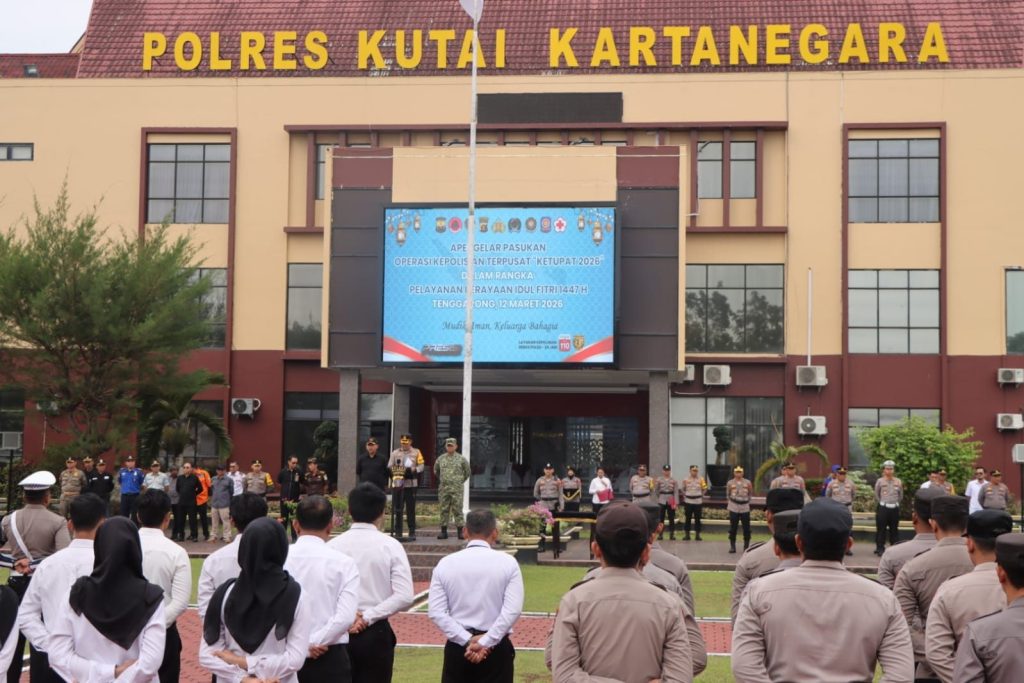 Kabaristimewa.id Kutai Kartanegara – Polres Kutai Kartanegara menggelar Apel Gelar Pasukan Operasi Ketupat Mahakam 2026 untuk pengamanan Hari Raya Idulfitri 1447 Hijriah, Kamis (12/3/2026) pagi. Kegiatan berlangsung di halaman Mapolres Kutai Kartanegara.
