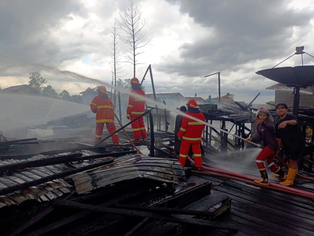 “Petugas menerima laporan pukul 15.15 WITA dan langsung bergerak. Saat tiba, api sudah menghanguskan dua rumah dan satu bangunan walet,” ujarnya.