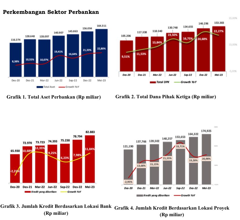 Kepala Kantor Otoritas Jasa Keuangan (OJK) Kalimantan Timur, Made Yoga Sudharma, menyebutkan, pada bulan Mei 2023, kinerja perbankan di Kaltim menunjukkan pertumbuhan positif yang signifikan, tercermin dari peningkatan aset dan dana pihak ketiga (DPK) masing-masing mencapai 22,80 persen dan 22,27 persen (yoy).
